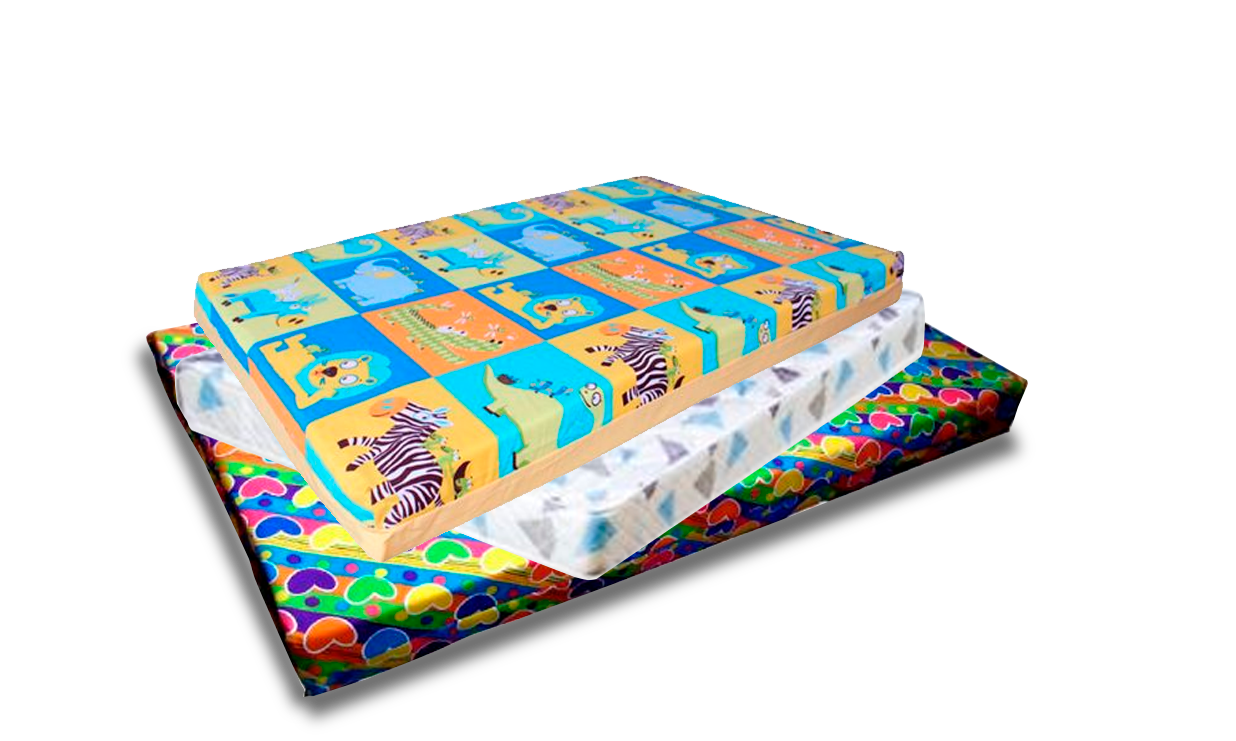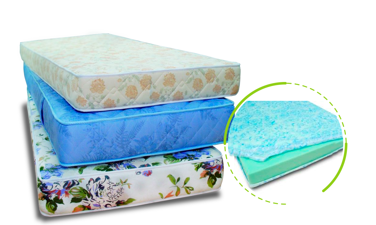 Elaborada en espuma DN 23, y una lámina de casata de 2.5 por una cara del colchón, en tela satín, sin garantía.