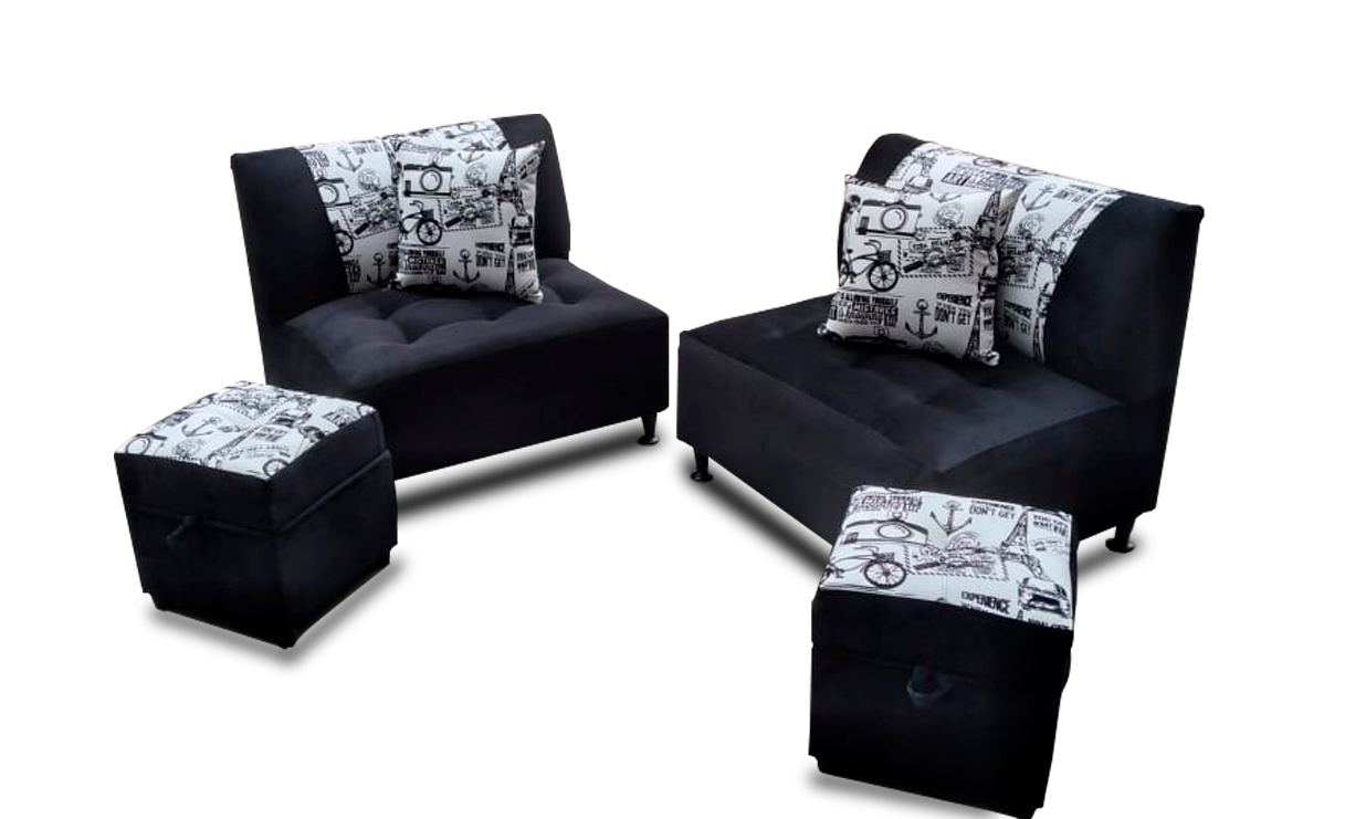Salas elaboradas en pino y sago con espuma en DN 23, telas, colores según petición del cliente con garantía de 2 años.